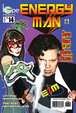 As part of the 14th annual New York International Fringe Festival – FringeNYC, hope theatre is proud to present their fifth collaboration with FringeNYC, Ramon Sanchez’s new thoughtful comedy, ENERGY MAN, a graphic novel come to life. Super Hero, or just Super Deluded? Making his way through a maze of memories, crushing criminals and recriminations alike, will Daniel wise up and make it to the other side? "good ideas...touching moments...The actors...offer good performances, ably playing multiple roles both realistic and archetypal. Stacie Perlman in particular is quite compelling as Daniel's guide to his own underworld. Energy Man has an interesting story and real heart at its core." -- nytheatre.com Daniel (Rob Langeder) is a flawed man forced to face his past, deal with his demons and find a way to get along with his ex-wife (Shelle Davis). Daniel loses everything the night Enron collapses. After a disastrous company party for his disgruntled employees (Seth Biberstein, James Ward) he transforms into his comic book hero: Energy Man. Accompanied by the courageous Cyberwench (Stacie Perlman), Daniel journeys through his past on a psychedelic / spiritual trip to reach his future. The cast is rounded out by Mac Brydon, as Super Villain Guido X-3, Gelsey Laurie, as dream date Jennifer, and Sean Dalal, as sensitive son Chris. August 13 – 29th Tickets: $15 - $18.